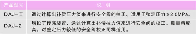 安全阀校正装置是为校正弹簧式安全阀的整压力而设计生产的。对于较重要部位的安全阀,除出厂或安装前进行冷态校正外,在运行过程中尚需热态校正,以确定在容器需泄压时,安全阀是否能准确地正常工作。借助该装置,可以很方便地在热态下进行校正,以保证安全阀正常使用。 技术参数